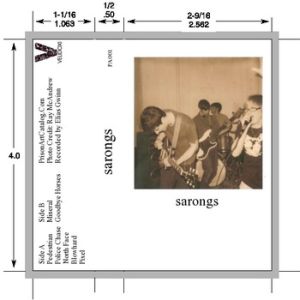 The first release at Prison Art Tapes is also the debut release from SARONGS of Syracuse, NY, offering a totally demented blend of deliriously evil post-punk that will leave a burnt and gaping hole between your eyebrows.