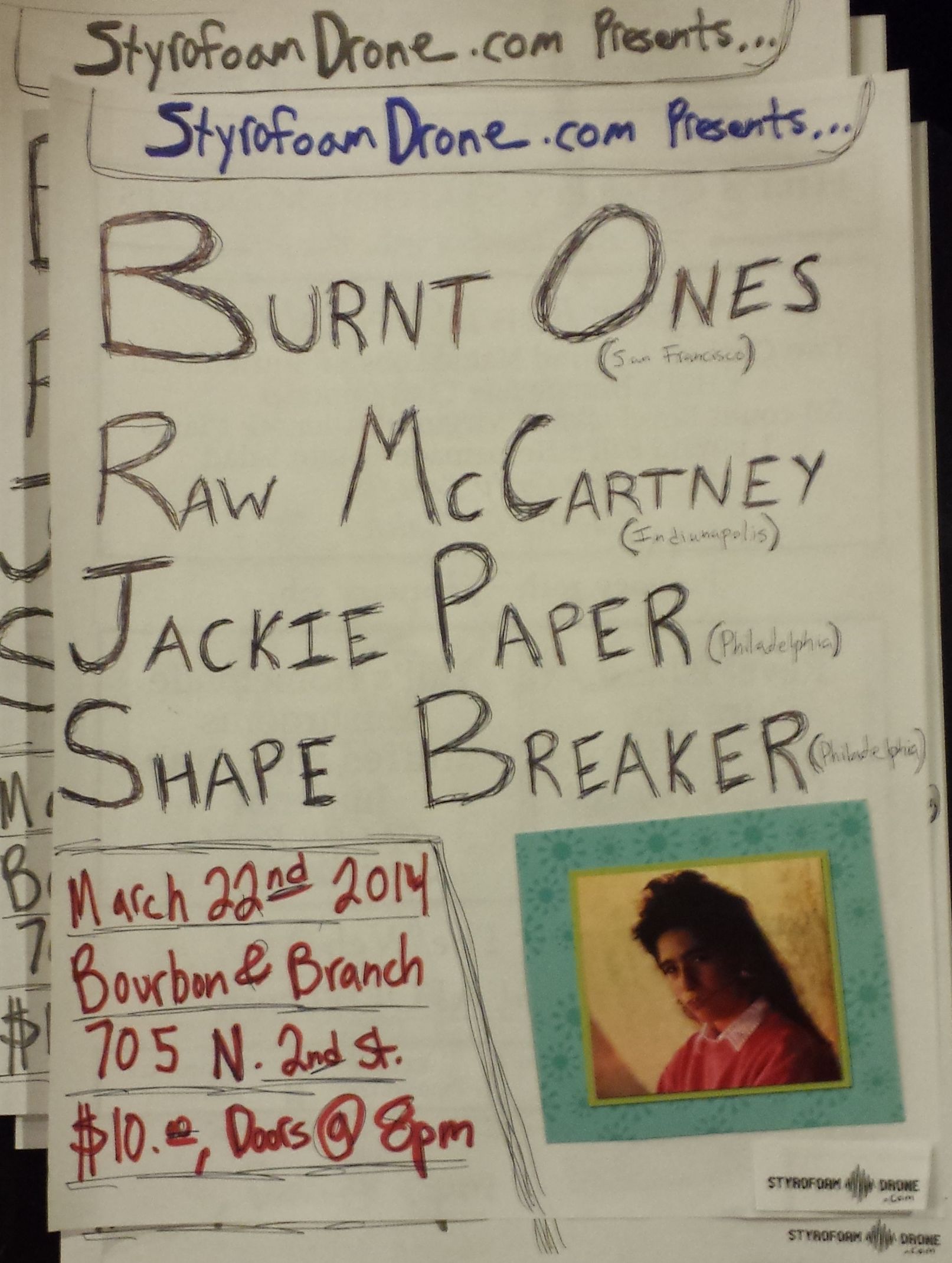 Styrofoam Drone Presents: Burnt Ones, Raw McCartney, Jackie Paper & Shape Breaker Live in Philadelphia, March 22nd 2014