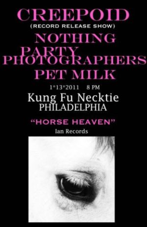 As some of you may already know, the record release show for the brand new CREEPOID album “Horse Heaven” is tomorrow night. The show takes place at Kung Fu Necktie in Philadelphia, starting promptly at 8pm.